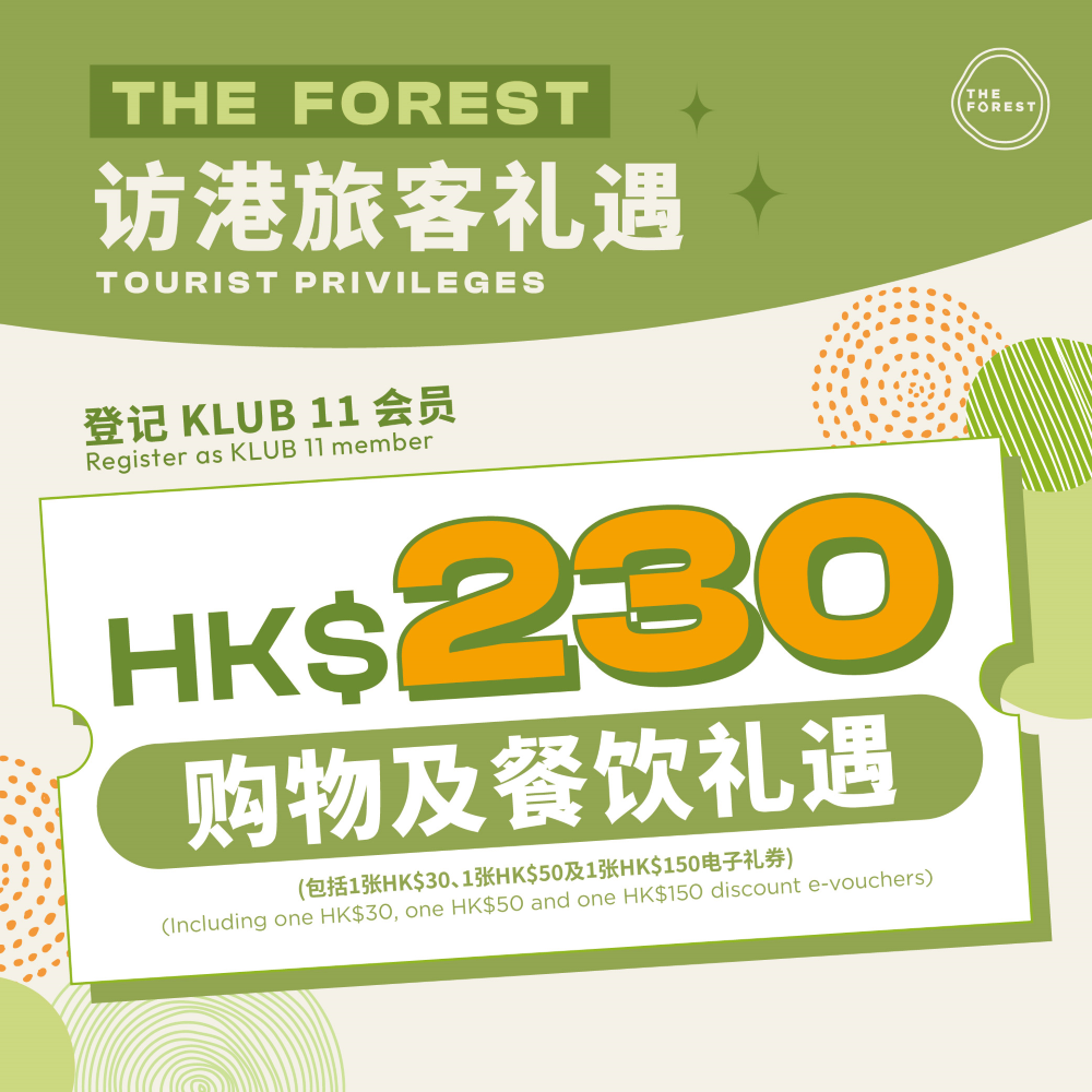 01/10/2025 - 30/11/2025From now – 30 November 2025, tourists visiting Hong Kong can redeem e-Vouchers worth HK$230 at THE FOREST!